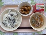 ごはん ごま塩 とり肉の唐揚げ サンラータン 牛乳