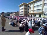 中休みに避難訓練を行いました。今回は教室にいない時間に地震が起きたことを想定した訓練でした。子どもたちは落ち着いて放送を聞き、安全を考えて行動することができました。教室以外で活動していた児童も、近くの先生や友達と声をかけ合いながら避難する姿がみられました。