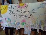 給食の時間にSスタ放送が行われました。全クラスから集めた羽を貼り、今年度の児童会スローガンの掲示が完成し、全校に披露しました。