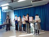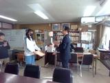 中休みに「税に関する絵はがきコンクール」で入賞した児童が川崎北税務署の方より表彰されました。