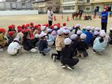 1年生は移動動物園で動物たちとのふれあいを楽しみました。ヤギや馬、うさぎ、モルモット等、様々な動物たちが来てくれました。動物たちと触れ合う場では、最初は緊張している様子でしたが、そっと撫でてみると動物たちはとても穏やかで、その可愛さに自然と子どもたちは笑顔になりました。