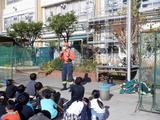 3年生は社会科「みんなが消防士」の学習で、宮前消防署犬蔵出張所の方に来校していただきました。防火ついての講話をしていただき、消防車乗車、消化器訓練、防火衣着衣等、体験しながら説明していだたきました。