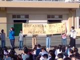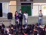 朝会は校庭で行いました。来年度、鷺沼小学校は創立50周年を迎えるため、鷺沼小学校をお祝いするための50周年スローガンが発表されました。「個性を咲かせ!未来に向かって みんなのバトンをつなげよう!」50年間受け継がれてきた鷺沼小学校と地域、みんなのバトンを自分たちでしっかりとつなげていきたいという思いが込められています。