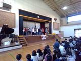 朝会で環境福祉委員会から募金で集まったお金が全校に発表されました。また先日、税に関する絵はがきコンクールで税務署長から表彰を受けた2名の児童が全校に紹介されました。4年生は学芸大会がんばりましたねの賞状を川崎市の児童文化研究会からいただき、校長先生から代表児童が受け取りました。中休みは音楽委員会による「さぎまるんるん音楽祭」が開かれ、本日最終日は6年生の発表があり、たくさんの児童が体育館に集まり、音楽祭を楽しみました。