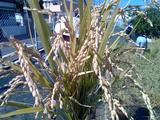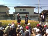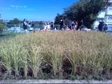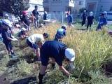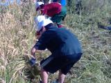 実った稲穂に大歓声が上がりました。2週間程度、陰干しをした後、脱穀作業に入ります。