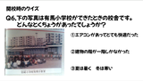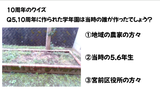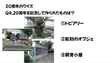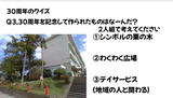 毎年、開校記念日直前の朝会で、計画提案委員会の児童が学校の歴史に関する内容をテーマにしています。今年は、地域の方々が子どもたちのためにつくっていただいたものを中心に取り上げ、クイズにして紹介しました。自分たちが通う地域のこと、支えてくださっている地域の方々への関心が高まりました。