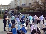 休み時間に避難訓練を行いました。事前の学習をもとに、校庭の中央に集まったりクラスごとに並び直したりすることができました。