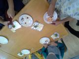 収穫した野菜はピザにすることになりました。皆で協力して準備し、美味しく食べました。