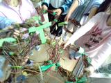 育ててきたあさがおのツルを使ってリースをつくります。丁寧に巻くことができました。一週間程度干して乾燥させてから飾り付けをします。