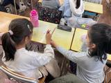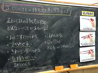 栄養教諭と担任による授業を行いました。正しい箸の持ち方について学びました。
