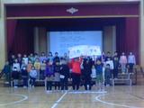 第6回の音楽朝会は1年生の発表。明るい歌声を全校児童に届けることができました。