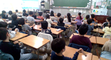 音楽の「がっきでおはなし」の学習では、カスタネットやすず、ウッドブロックなど様々な楽器を使って音の組み合わせを楽しみました。 楽器の音色に合うリズムを選び、呼び掛ける役と答える役に分かれてリズムづくりをしました。 子供たちは、自分の楽器の音色と演奏の仕方との関わりについて気付き、それぞれの役に分かれて楽しく演奏をしていました。