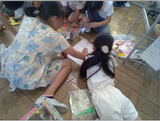 食育の学習では、バランス良く食べることが元気に過ごすために大切なことだと学びました。給食の時間でも、苦手な物でも一口は食べようと意欲をもっていました。 また、生活科の学習ではヨットカーやパッチンジャンプなどのおもちゃを作りました。もっと跳び上がるようにするためにゴムの付け方を変えたり、動物の絵を描いたりして工夫していました。