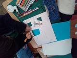 図画工作「まどをあけたら」で、カッターナイフを使い画用紙に窓を作り、想像の世界を表現する学習を行いました。子供たちは、三角形や四角形やハートなど、窓の形を工夫していました。普段使い慣れていないカッターナイフには、苦戦する様子もありましたが、安全に気をつけながら作品を作りました。子供たちは、「開けるとサメがいる」と窓の奥にどんな世界が広がっているか想像しました。