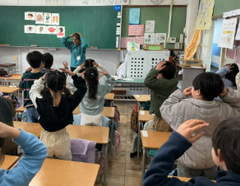 学年集会では、1年生みんなで、仲良くなる遊びをしました。実行委員は休み時間にセリフの練習をして、当日はルールの説明をしたり、感想を話したりして盛り上げました。