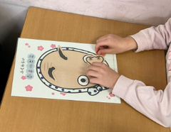 「福笑い」という名の通り、どの子も自然と笑みがこぼれ、楽しい学習の時間を過ごすことができました。