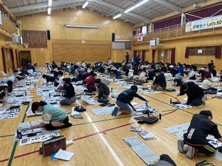 体育館で4クラスで書き初めを行いました。