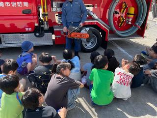 10月8日(水)、社会科「火事からまちを守る」の学習で、宮前消防署から消防士さんが来てくださいました。