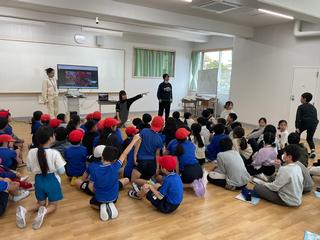 11月18日(火)に川崎フロンターレのコーチたちが来てくれて、サッカー教室を行いました。慣れない足でのボール操作に苦戦しながらも笑顔で楽しんだり、大きな声で盛り上がりながらサッカーに取り組んだりする姿が見られました。川崎フロンターレのスタッフの皆様ありがとうございました。