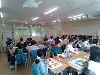 待ちに待った給食が始まりました。おいしい給食が始まることを心待ちにしておりみんなおいしそうに食べていました。