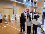 アリーナでは5、6年生が一緒に集まって運動会に向けた学習を行っていました。