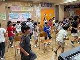 9月18日に、リトミックの授業がありました。川崎先生の歌やピアノの音色に合わせて体を動かしたり、一緒に歌ったりして、音楽を全身で感じたあっという間の1時間でした。音楽の旅をしながら、バスになったり、汽車になったり、かたつむりになったりと、色々なものに変身して、子どもたちは大いに楽しんでいました。