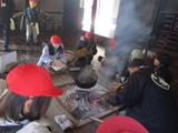 実際に囲炉裏で火を起こしている家では、煙の匂いや火の暖かさを感じながら、囲炉裏のそばに座りボランティアの方のお話に耳を傾けていました。「これは何のために使うのですか」と積極的に質問する姿も見られ、教科書だけでは学べない貴重な体験となりました。