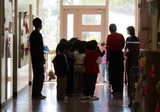 ドキドキの入学式を終えて、いよいよ学校生活がスタートしました。入学してすぐに、これから毎日過ごす学校の中をクラスのみんなと探検しました。廊下の歩き方や挨拶の仕方などを確かめた後、職員室や保健室へ。みんな上手に探検できていました。これからの生活がますます楽しみになりました。