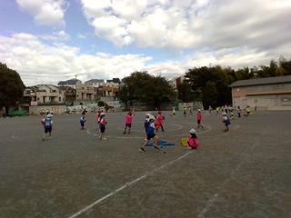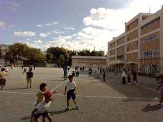 午後は、また青空が復活。2年生が体育の学習で、的あてゲームしていました。「2点取ったよ」「誰もいない間に投げたんだ」とうれしそうに話しかけてくれました。