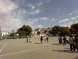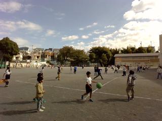 今日の朝は、冷たい風が校庭を吹き抜けていました。それでも中休みは、多くの子どもたちが校庭で遊んでいました。よく見ると教育実習生も一緒にドッジボールをしています。