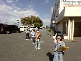 同じく3年生。理科の学習です。遮光板で太陽を観察していました。