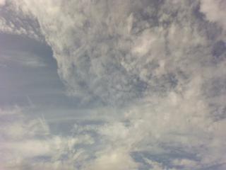 今日は一段と冷えた朝でした。午後からは秋らしくなった空模様が見られました。夏の濃い青色から淡い水色(宙色)の空が雲の間から見ることができました。