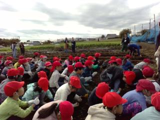 小川さんの畑に今年も1年生と2年生がそれぞれ時間を分けて芋掘りに行きました。保護者の方にも昨日の夕方にボランティアをお願いしたのですが、どちらの学年もたくさんの方がお手伝いに来てくださいました。最後は坂道をお芋が入ったリアカーを引いていただきました。ありがとうございました。