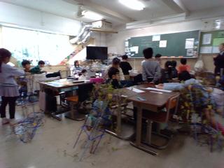 1年生の生活科。春から育ててきた朝顔と先日収穫したさつまいもの蔓でリース作りに挑戦中です。