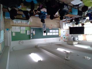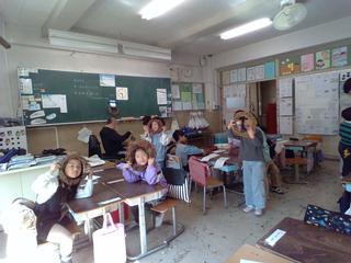 今日は、昨日よりもさらに気温が下がったようで、テレビの気象情報では、12月中旬なみと伝えていました。子どもたちの服装も重ね着をしたり、長ズボンに変わったり、してきました。ただし、教室の中はポカポカで、シャツ一枚で十分なほどです。