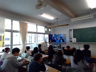 朝は「カウントダウン パーティ」を体育館と職員玄関前の中継とで集会をする予定でしたが、今回は各クラスで動画をでの視聴となりました。