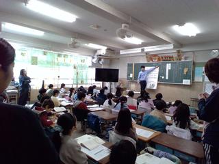 今日は他にも、3年生が社会科で「スーパーマーケット見学」、教育実習生が大学の先生に見ていだく「研究授業」、向丘中の先生による異校種交流などがありました。