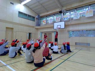 6年生は、「川崎ブレイブサンダース」のコーチから直接バスケットボールを教えていただきまました。
