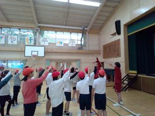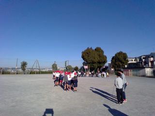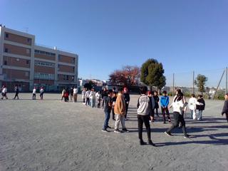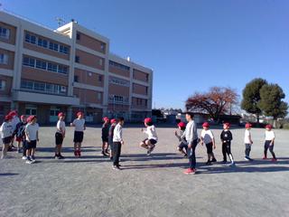 3年生は体育の学習「体つくり運動」を行っていました。寒空の中、体は温まったかな。