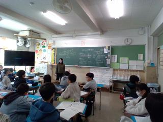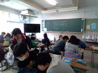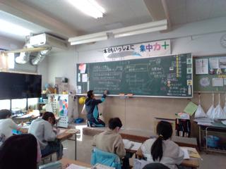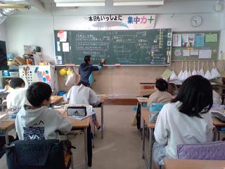 5年生の総合的な学習の時間では「大根プロジェクト」が進行中です。実行委員で活動を決めていました。その中で「三本松に水をあげる」を毎朝取り組んでいる担当もあります。今日は、来週の学校公開日で保護者の方への呼びかけをクラスで考えていました。