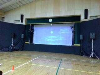 今朝は7時すぎから体育館を劇場に変える作業をしてくださいました。 ※サポーターで来ている卒業生に訪ねたら、「初めて観ます」とのことでした。以前は「芸術鑑賞教室」を実施していなかったのですね。