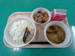 今日の給食「ごはん さばの塩焼き 治部煮(じぶに) みそ汁 牛乳」