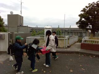 朝、昇降口が開く前の時間。6年生が数名集まって何やら・・・。