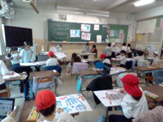 6年生の総合的な学習の時間。金曜日の学校公開日に「小松菜プロジェクト」を行います。保護者の方にプロモーションをするようです。今日は保護者の方への招待状の作成をしていました。