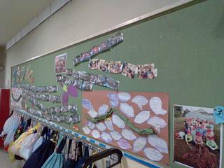 1年生の廊下に行くと、先日2年生で紹介したさつまいものお礼の手紙が、ここにもありました。一人ひとり畑を世話してくれたこと、掘るのを手伝ってくれたこと、などなど、感謝の気持ちが綴られていました。