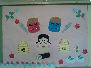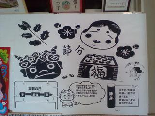 職員玄関前の掲示板(用務員さんが毎月貼ってくれています。)