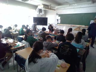 6年生の図工。なにやら小鉢を作っているようです。学年一斉に取り組んでいます。さらに粘土が固まってしまうので一気に完成まで行うようです。