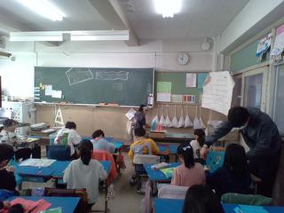 5年生の理科。実験の予想を立てているようです。お互いに考えを話し合っていのかな?