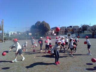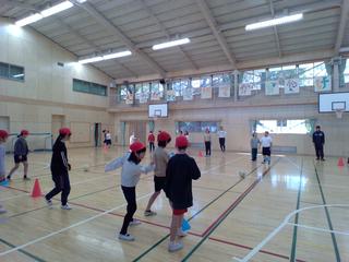 柔らかな日差しの中、1学年、3学年、4学年が体育の学習をしていました。