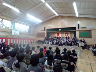 3年生以上は歌のプレゼント。どの学年も途中に6年生との思い出やメッセージを話していました。